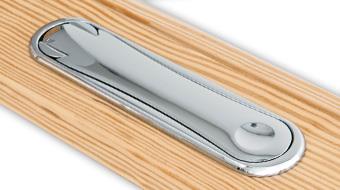 The window handle which seduces - to look at and touch. TENTAZIONE is recessed into the sash profile. Thus the handle element and window sash blend to form a single unit. With its slightly raised boundary zone, the handle cover perfectly conceals milled edges. The closing and opening mechanisms of the window remain unchanged. The window functionality in terms of burglary resistance and ventilation also remains unchanged. Slight pressure on the TENTAZIONE lifts the slender handle body from its integrated position. Handle operation is then as usual. It is available in the colours chrome (brushed and polished), gold-look, stainless steel-look (brushed) and RAL 9016 traffic white.