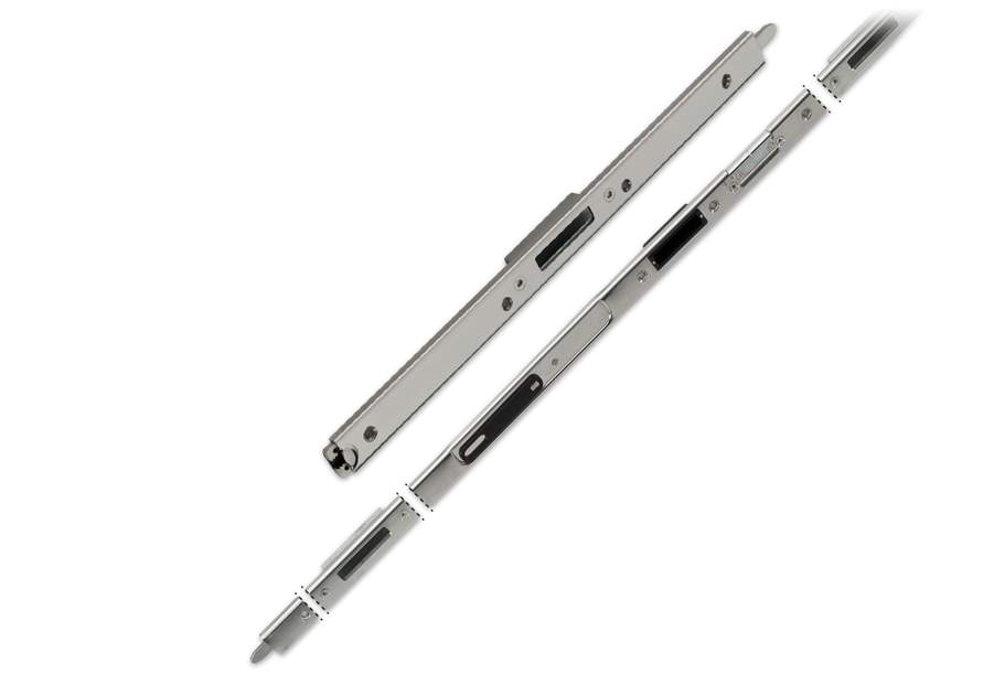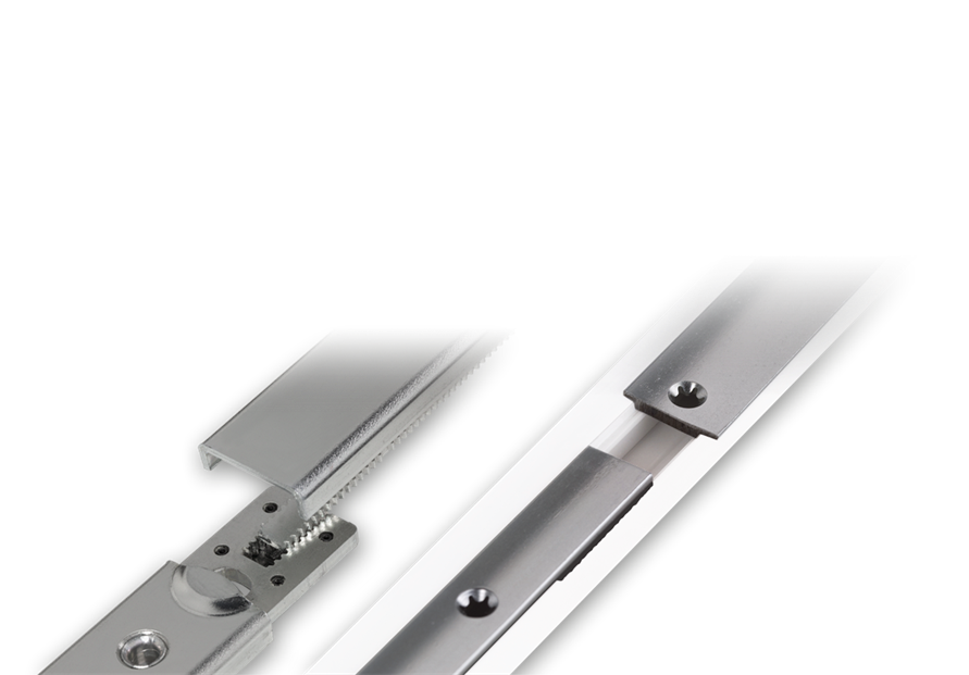For 2-sashed front doors: the French casement drive gear be used on a variety of interlocking systems. Depending on the type of door lock, sash rebate heights of 2040 mm to 2815 mm can be bridged by means of drive gears and end pieces. The French casement drive-gear is used for a variety of PVC profiles. For installation, the inactive leaf must provide enough space for the 28-mm wide U-profile.